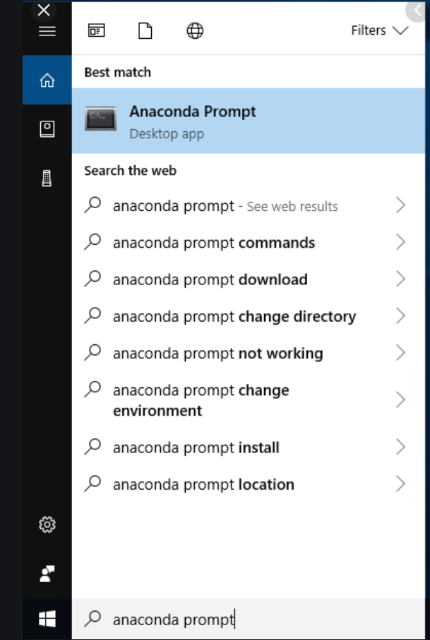 - 윈도우를 기준으로, (키보드의) 시작 버튼 > Anaconda Prompt 라고 입력하시면, 실행하실 수 있습니다.