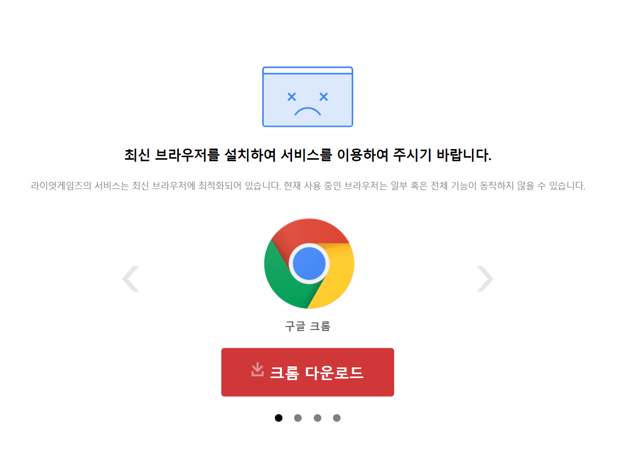 - 호환이 되지 않는 브라우저라는 안내와 함께, 최신 브라우저를 설치하여 계속하거나, 사용자의 휴대폰에서 지금 Action을 계속할 수 있다는 안내를 제공한다.